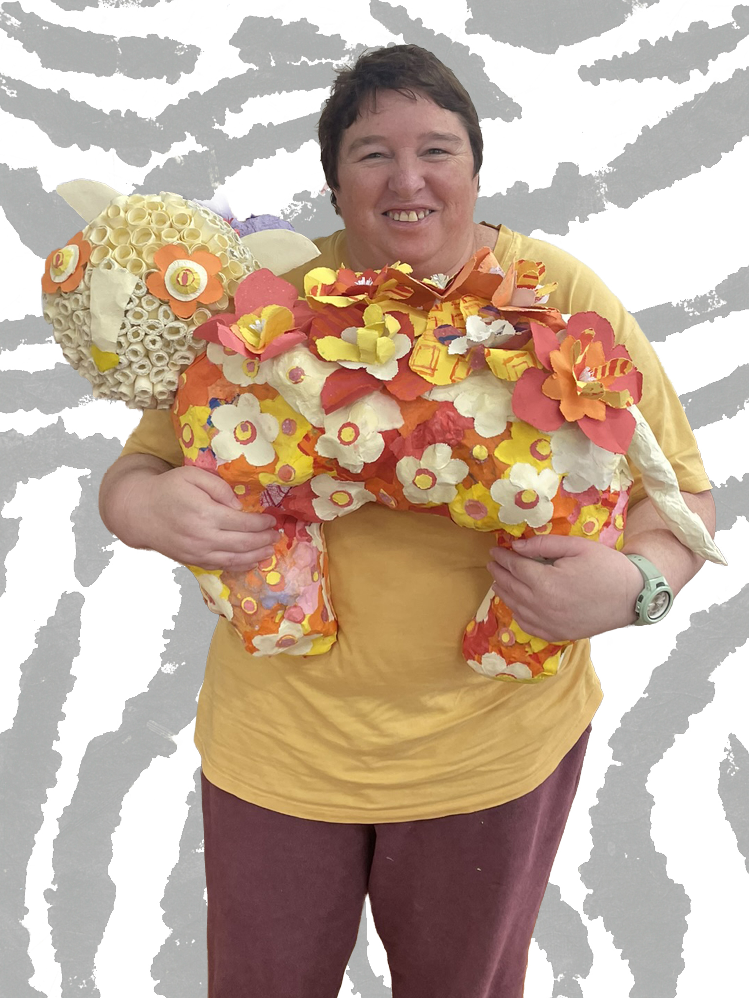 Method: My lamb is made of foam and covered in handmade paper. I curled paper for her wool and made paper flowers to look good. Isn’t she beautiful!