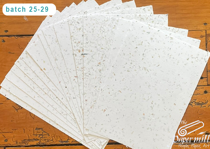 All paper made at The Papermill has been handmade from recycled and/or plant fibres. There are no chemicals used in the process.