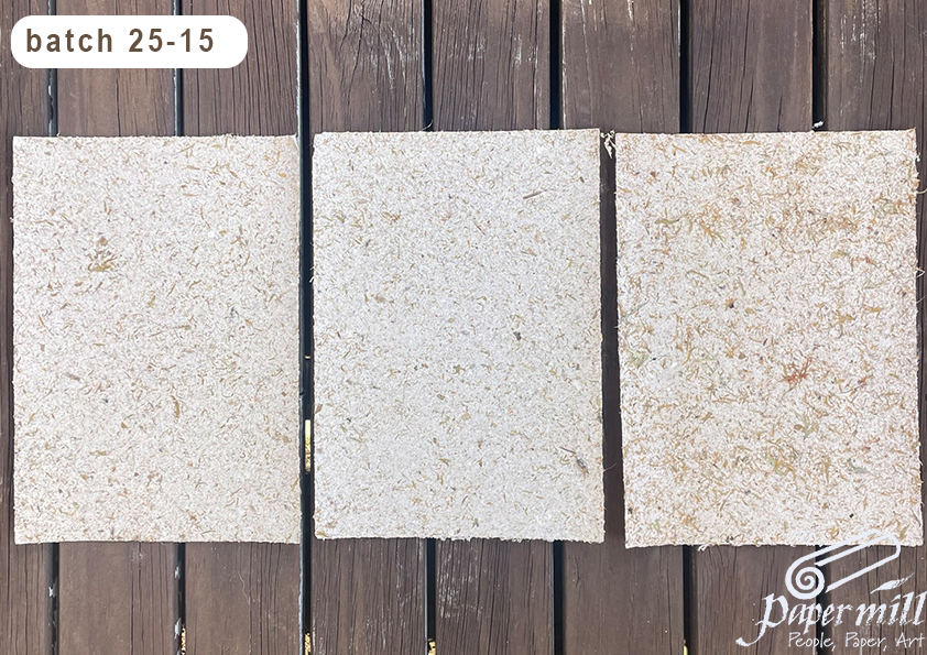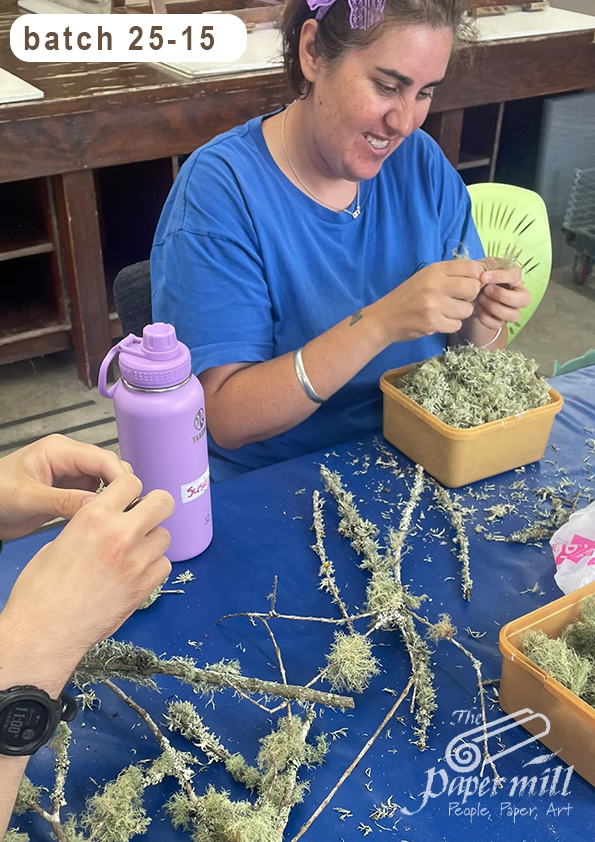 No the title is not incorrect.  We tried making paper out of pure lichen but as we suspected there wasn’t enough cellulose to hold it together so we mixed in 6 A4 sheets of recycled w. wild ginger to hold it together. Loving the texture and patterns.